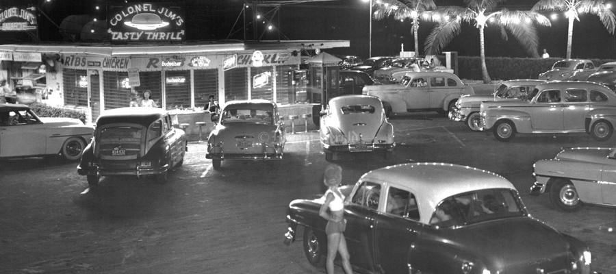 2층 테라스에서 보이는 헐리우드 사인, 드라이브인 영화관이라는 미국 고유의 문화적 전통, 1950년대 다이너라는 아메리칸 드림의 상징적 공간.