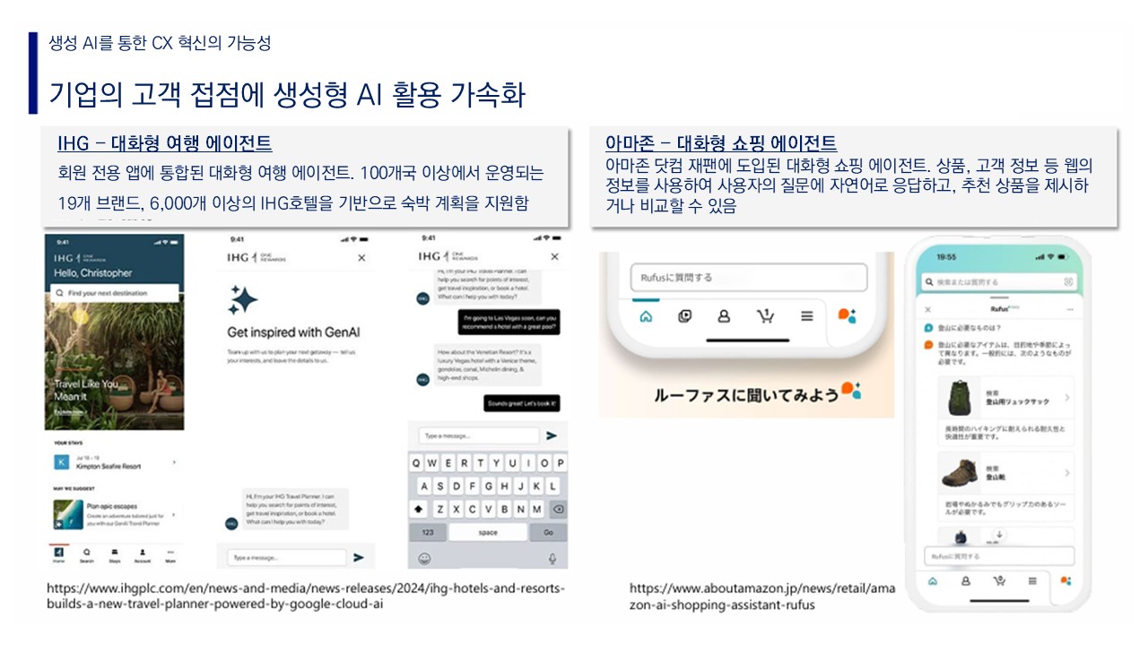 - 아마존 Rufus: 일본에서도 도입된 쇼핑 에이전트예요. 상품 정보, 고객 데이터, 웹 정보를 학습해 자연어로 추천합니다.