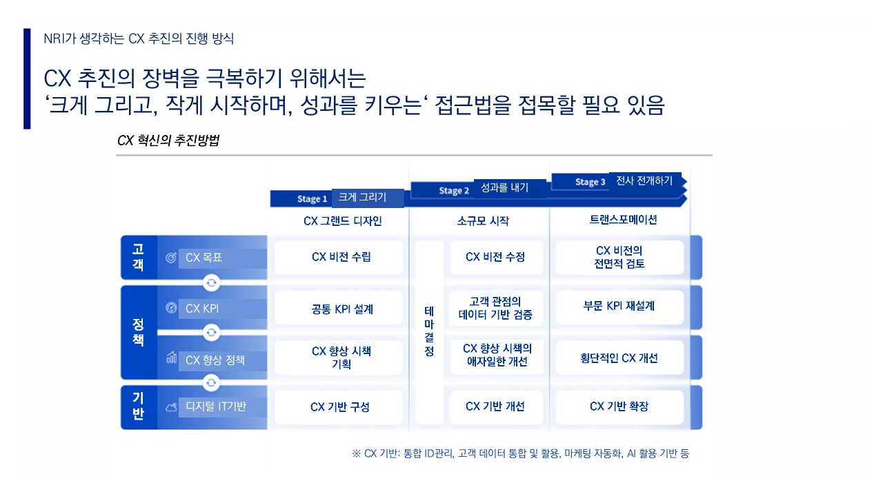 NRI는 '크게 그리고, 작게 시작하고, 성과를 키운다'는 프레임을 제안합니다.