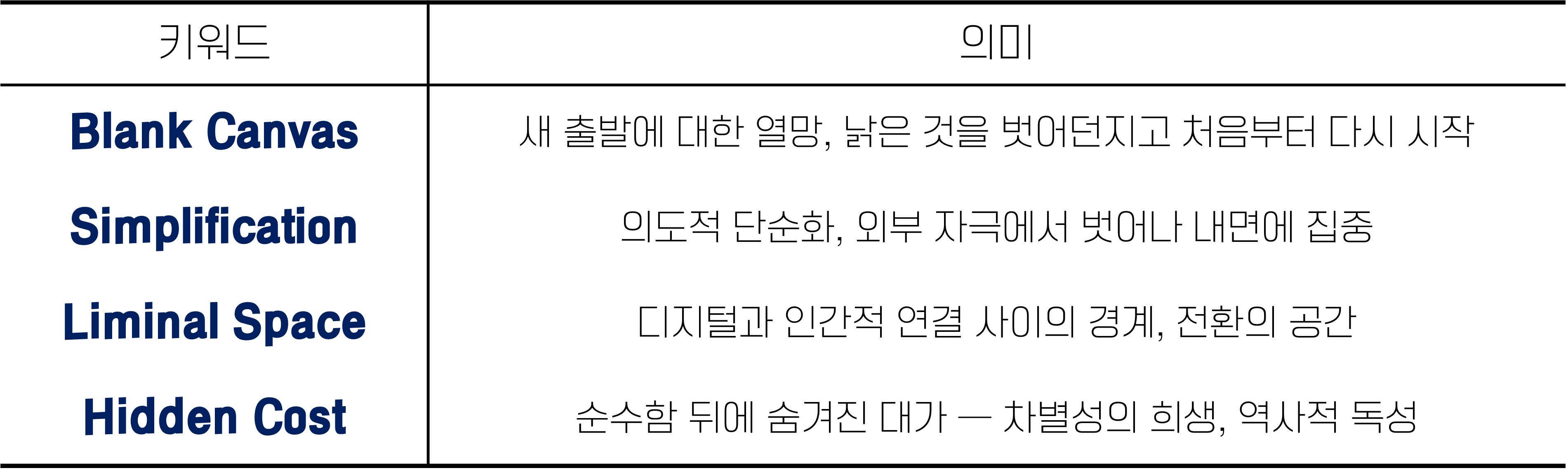 AI가 모든 것을 채우려 하는 시대, 역설적으로 '비워두는 용기'가 프리미엄이 됩니다. 과포화된 정보와 기능 속에서 고객에게 숨 쉴 공간을 주는 브랜드가 차별화됩니다.