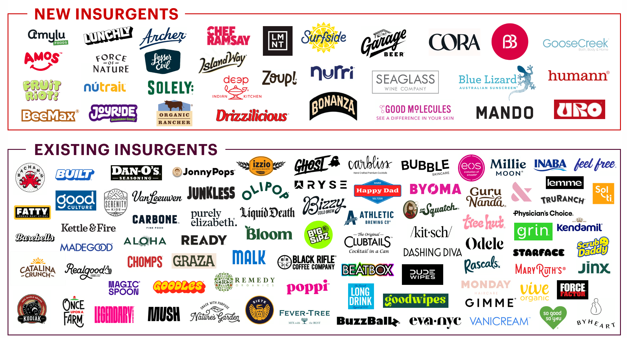 베인은 2026년 보고서에서 113개의 고성장 미국 소비재 브랜드를 제시하며, 이들이 2025년 전체 FMCG 시장점유율 2% 미만으로도 시장 성장의 약 36%를 가져갔다고 설명합니다. 주목할 것은 이 수치의 추세입니다. 2024년에 같은 지표는 약 23%에 불과했습니다. 1년 만에 13%p가 뛴 셈입니다. 2017년 이후로 범위를 넓히면, 약 400개의 브랜드가 약 600억달러의 미국 소매 증분 매출을 만들었고, 이는 상위 3대 소비재 기업 증가분보다 50% 많은 수준입니다. 요컨대 지난 10년의 핵심은 "작은 브랜드가 좀 잘됐다"가 아닙니다.